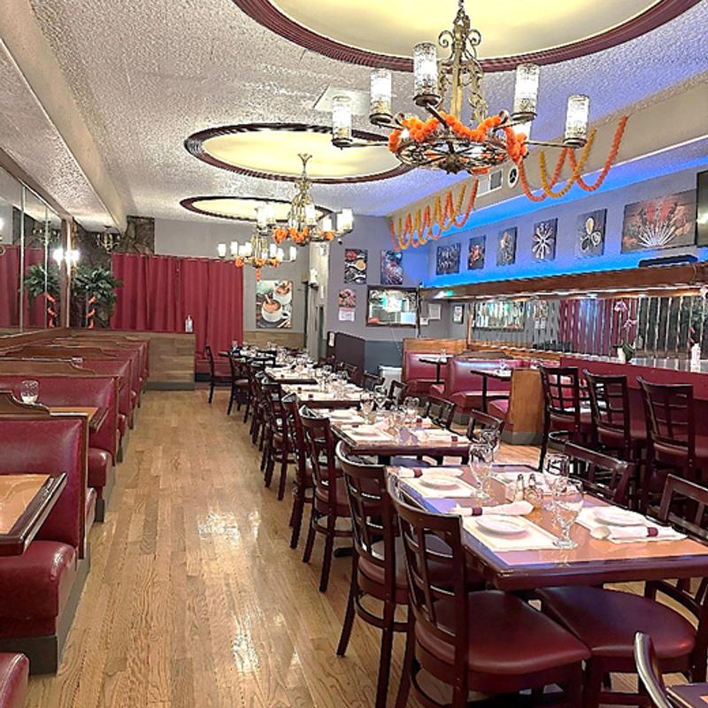 We can accommodate up to 93 guests, making it ideal for everything from intimate celebrations to larger group events. Guests are welcome to order from our full menu, featuring a wide variety of traditional Indian dishes made with care and quality ingredients. For added convenience, we also offer catering options, including tray-style orders and our Silver, Gold, and Diamond packages—designed to make planning your event simple and enjoyable.